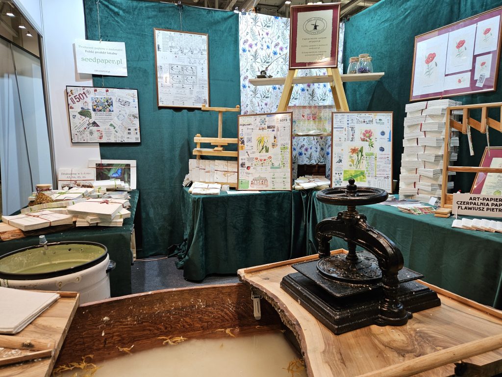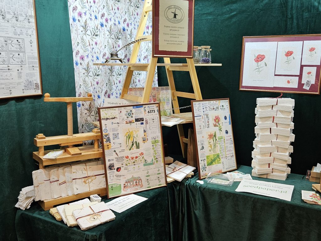 Dziękujemy za przybycie licznie zgromadzonym uczestnikom. Staraliśmy się przybliżyć nasze rzemiosło prezentując czerpanie papieru z nasionami. Dziękujemy za fantastyczną atmosferę podczas targów.