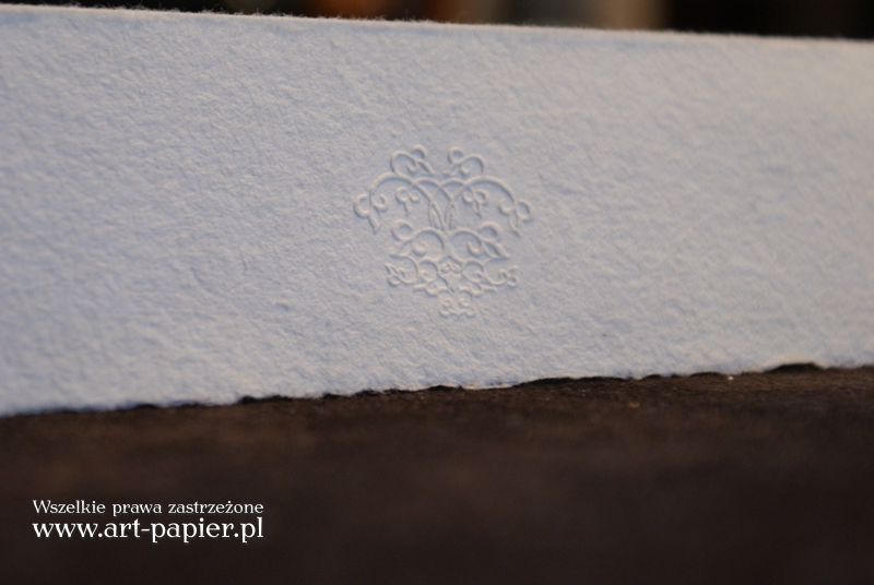 Na papierze została odbita specjalna pieczęć składająca się z matrycy i patrycy. Jedna część pieczęci jest wypukła, druga wklęsła. Po odciśnięciu na papierze pozostaje wypukły wzór.