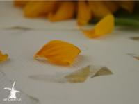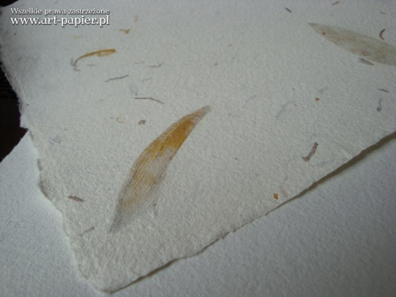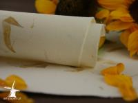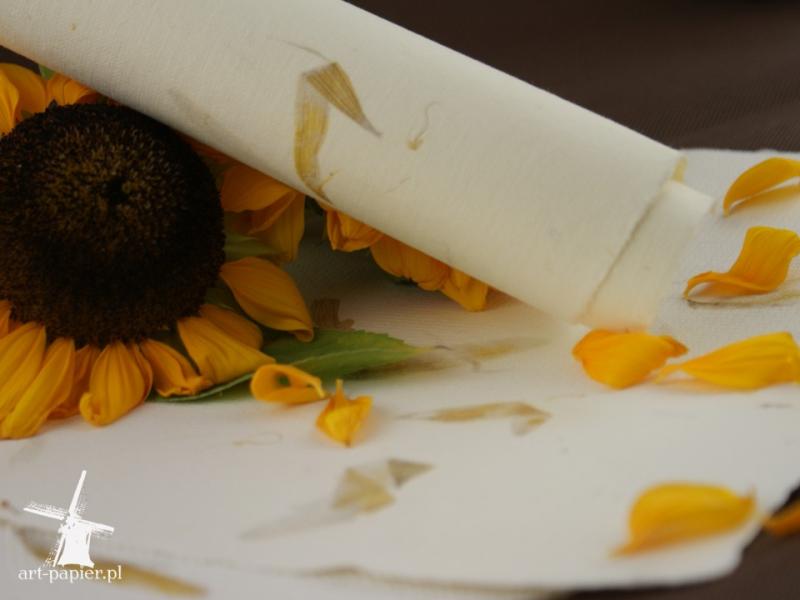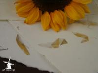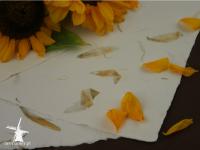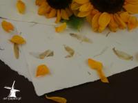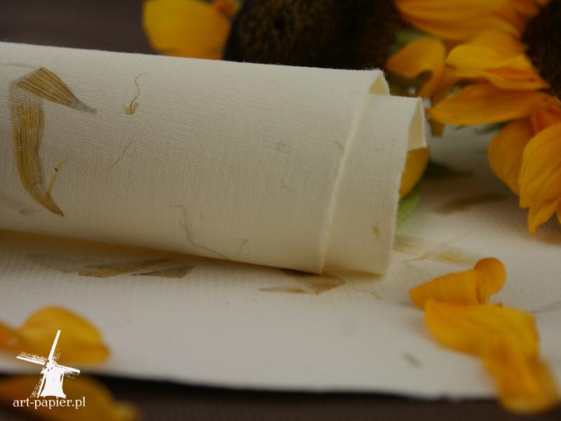 Papier ręcznie czerpany z dodatkiem płatków słonecznika.