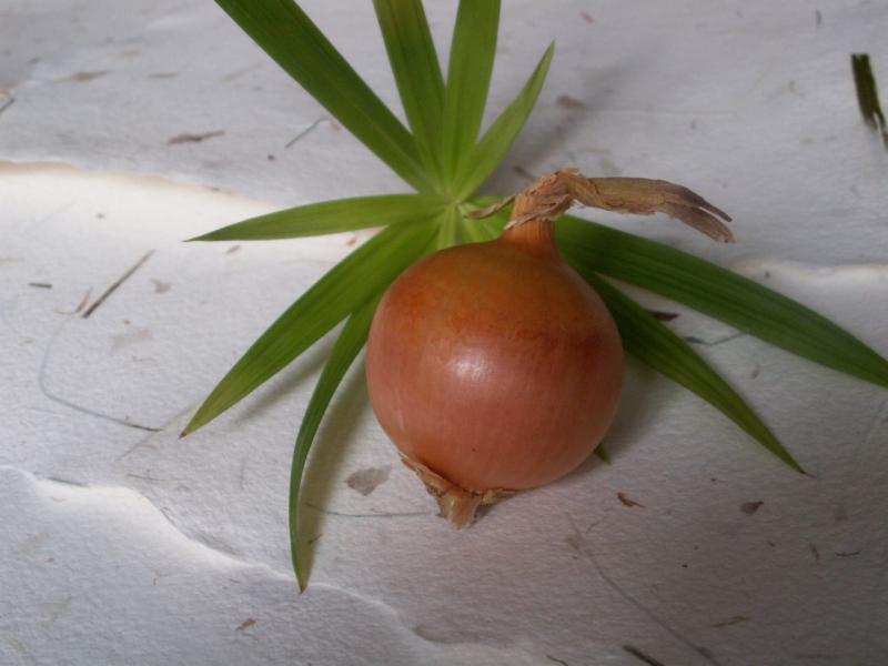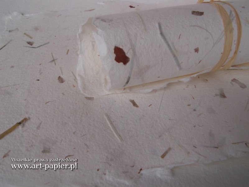 Papier ręcznie czerpany z dodatkiem łusek cebuli i różnych traw.