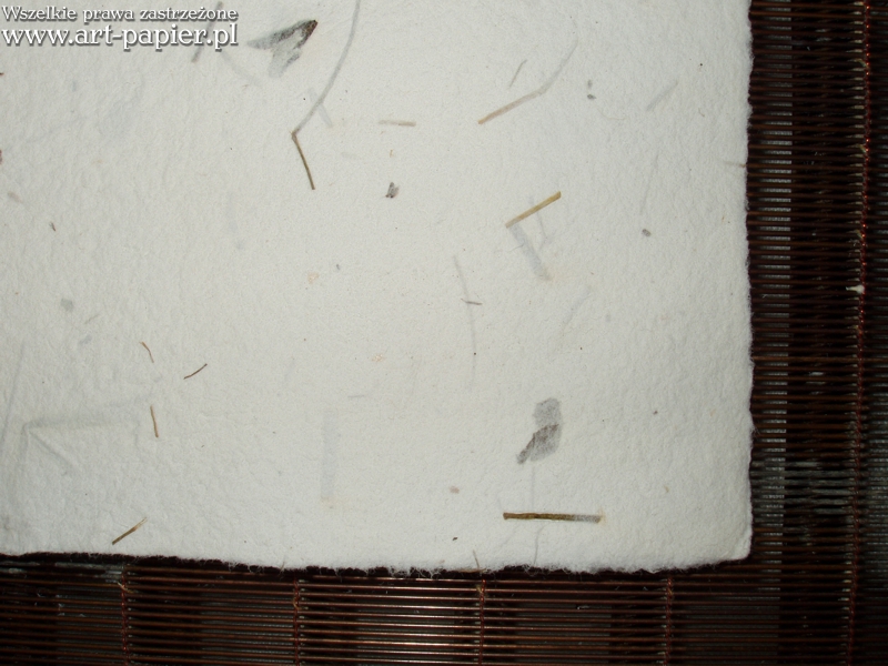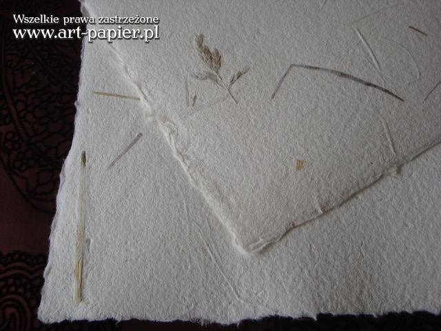Papier ręcznie czerpany z dodatkiem różnych gatunków traw.